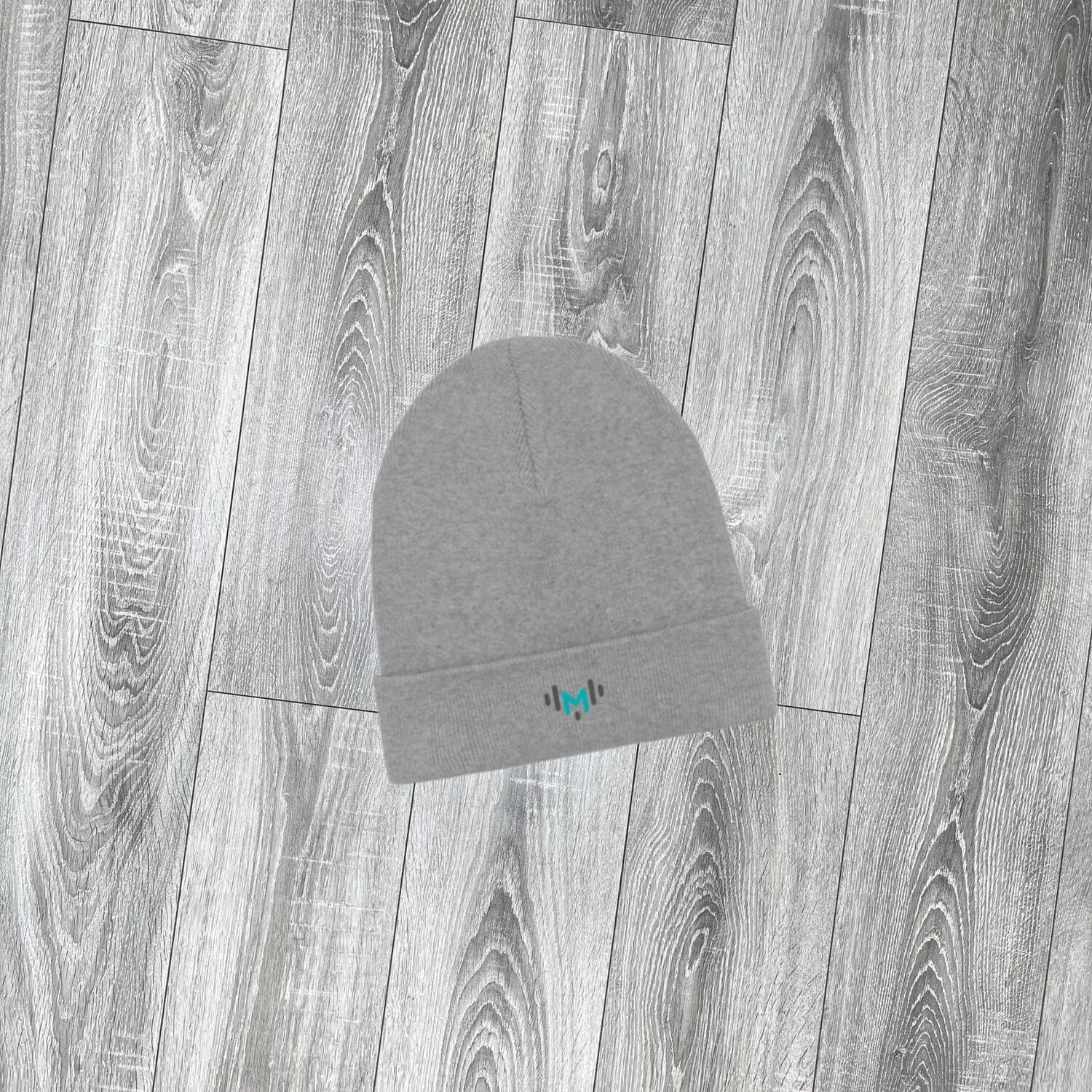Berretto a costine grigio con logo Spazio MOPO® a colori.