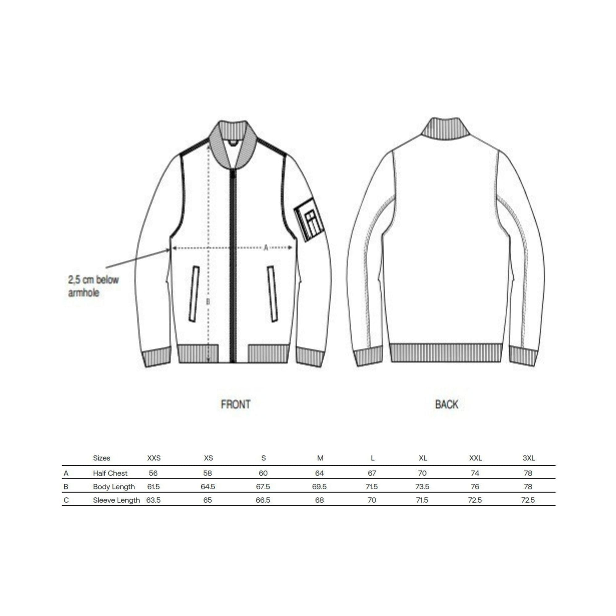 Giacca bomber blu scuro con logo Spazio MOPO® bianco lato cuore e sulla manica destra.